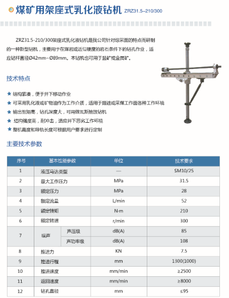 煤礦用架座式乳化液鉆機(jī)ZRZ31.5-210/300